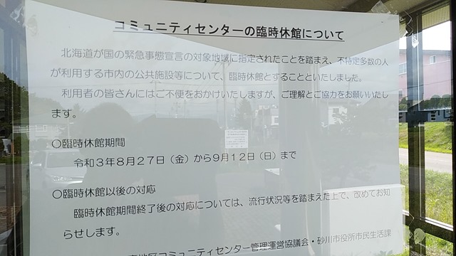 また、砂川市の公共施設も9月12日までの臨時休館が決まっています。詳しくは砂川市のHPをご覧ください。