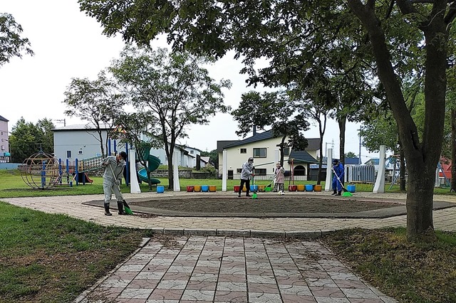 9月の第1日曜日なので晴見町内会は清掃の日です。今日も公園のインターロッキングの目地に生える雑草は草刈り機で刈っていただいて大助かり。