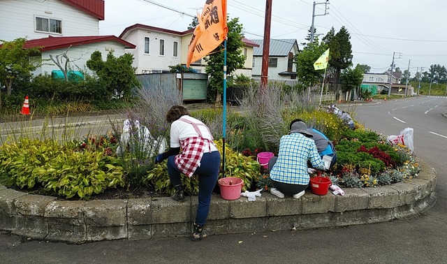 6月に花植えをしたロータリーの雑草取りもしました。今朝は、町内会に市の運営する「お試しハウス」があって、そこを現在利用されている奥さんが参加してくれました。