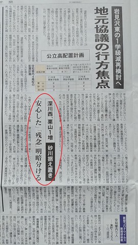 注目していた砂川高校の来年度の募集定員ですが、現状より1学級減の80名となりました。昨日の道新にも掲載されています。(下の写真)