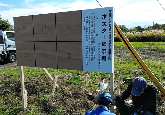すでに衆議院小選挙区選出議員選挙(北海道十区)のポスター掲示板の設置が始まっていました。ポスター掲示板の設置は3日間をかけて行われるそうです。