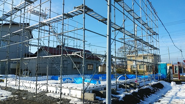 もちろんタイルを張る技術は持っていないので、セメントを運んだり、モルタルをこねたりの仕事です。当時は丸太の足場が当たり前で、何だか懐かしくて話題にしました。