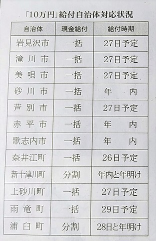 - 本日の臨時議会での補正予算によると砂川市は年内に一括10万円を支給する方法を選択したようですが、その理由について