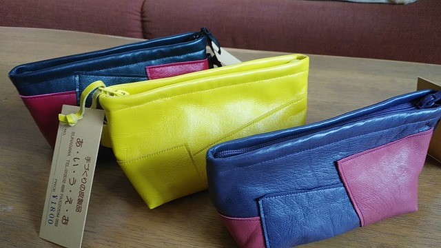 たまに皮製品の注文が入ると50年も前に貰った古い直線縫いしか出来ないミシンを踏みます。上の写真は作った製品です。