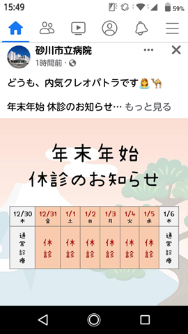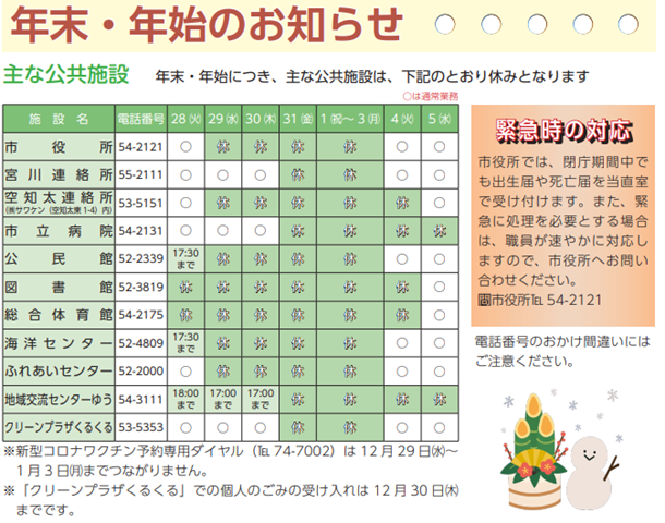 さて、砂川市の各施設はどんな年末年始かは「広報すながわ12月15日号」です。