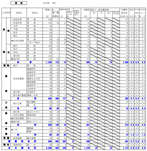 結果的に見ると、滝川高校が最初の出願数203名→185名に減ったものの定員より25名オーバー。そして、滝川西の普通科が120名定員のところ115名→130名に。