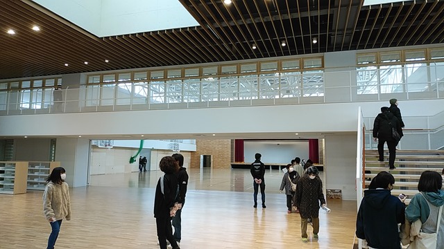 校舎の中心をなす体育館の入口です。現在、3校が統合しての小学校なので保護者と一緒に子ども達の見学もたくさんでした。