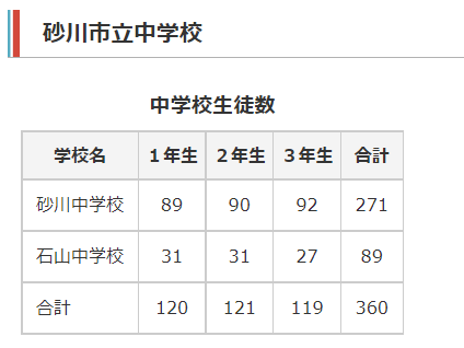 砂中は今、3クラスですから、1クラスだいたい30人ぐらいの生徒数。石中も1クラス30人です。この状態で統合すると、1年生以外は1クラス40人ですから、ほんとんどのクラスで40人ギリギリになりそうです。