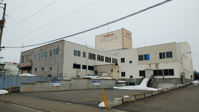 今年、解体される「旧グランドパチンコ」の建物です。以前は流行ったパチンコ屋さんでしたが、火事になって長い間使われていませんでした。そこを砂川市が1億3千万円で購入し、駅前開発の中心施設を建設する予定です。