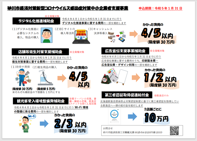 砂川市の経済対策については「商工労働観光課 商工振興係」にお問い合わせください。