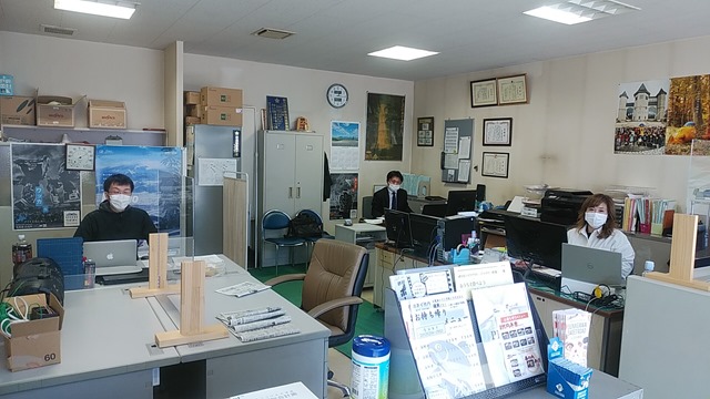 左からSuBACo担当の千葉さん(地域おこし協力隊員)、新しい事務局長になった櫻田さん(市の商工労働観光課副審議監と兼務)、そして観光協会事務の佐藤さん。