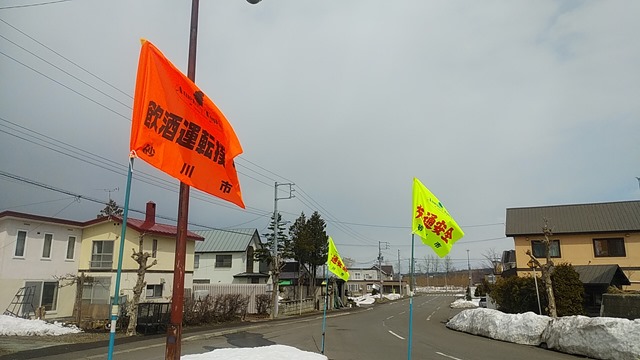 早速、今朝、飲酒運転撲滅の旗と共に町内各所に立てました。