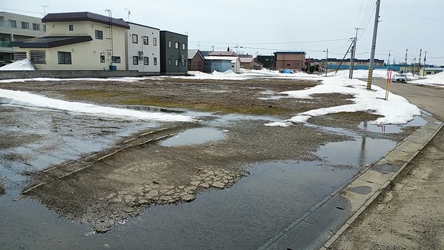 以前、2階建ての古い市営住宅があった所で、福祉複合施設(老人保健施設「みやかわ」とケアハウス「ぴんねしり」)の裏側になります。