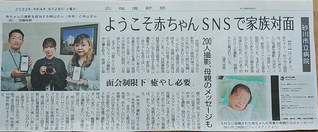 市立病院では生まれたばかりの赤ちゃんの姿を発信しています。昨年から始めているとのことですが、昨日(28日)の道新地方版に紹介されました。