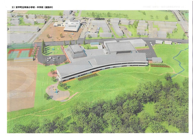 上は今年の11月に開校予定の安平町立早来小学校・中学校の外観です。