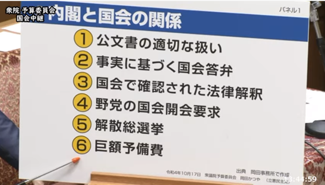 午後からは立憲民主党の質疑が続きましたが、大臣に対する政治資金関連の質問が多くて、ちょっと退屈でした。ところで、岸田首相の右隣にいる高市大臣ですが、寝ているのではなく目をつぶっています。