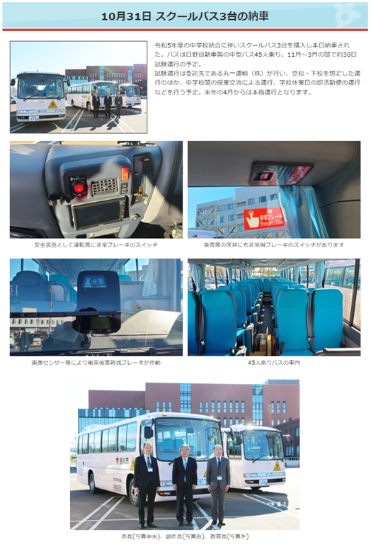 上の写真は市長のブログから借用しました。スクールバスの納期は10月31日でしたので、ぎりぎり間に合ったのでしょう。