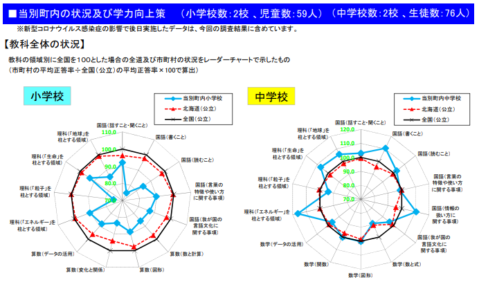 その中で市町村別の結果もありました。先日、委員会視察をした当別町の結果が下です。