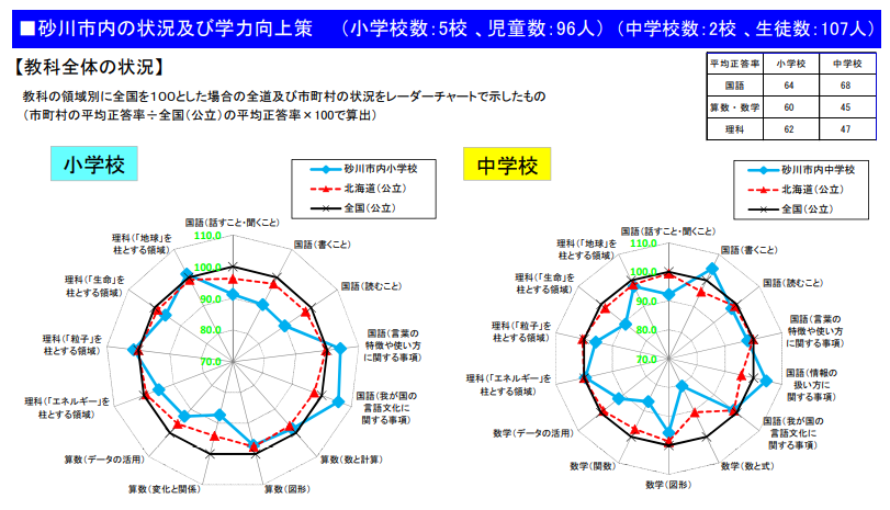 まずは砂川市の調査結果です。私もそうだったですが、中学校の数学って難しいですよネ。