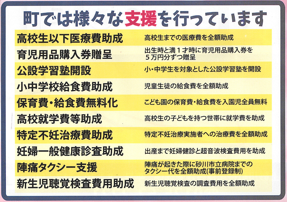 チラシの裏面を見ると子育て支援の内容が書かれていましたのが下の内容。
