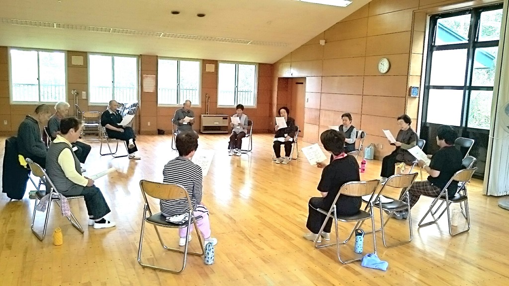 上の写真はいきいき運動推進員の方が一緒に歌おうと「いつでも夢を」を歌っているところです。来月は運動の後、お楽しみ会が予定されています。