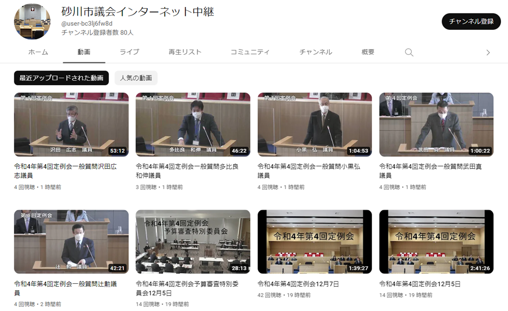 砂川市議会のHPに12月5日から7日まで本会議場、予算審査特別委員会、一般質問を編集した録画がUPされました。