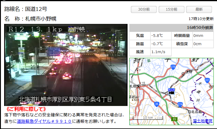 国道12号線のライブカメラで見ると江別、札幌の道路は全く雪が無いです。奈井江町の積雪深は68cm、砂川市は61cm。