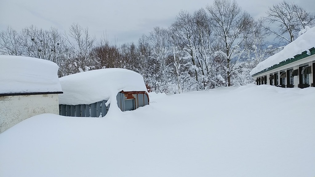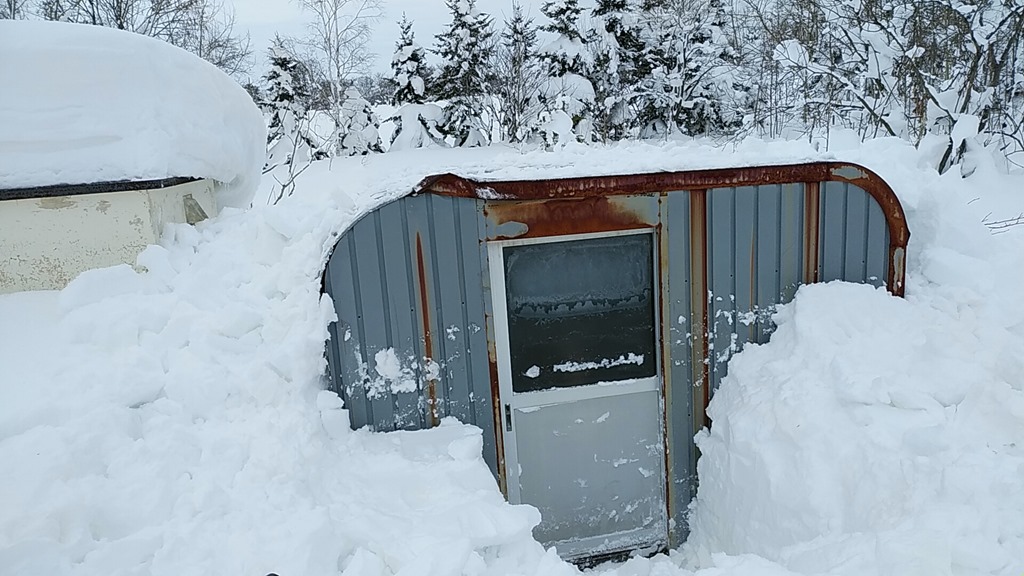 この物置はセンターの網戸が入っているくらいで冬は全く使いません。しかし、物置が雪の重さで潰れたら厄介なことになるので雪下ろしをします。
