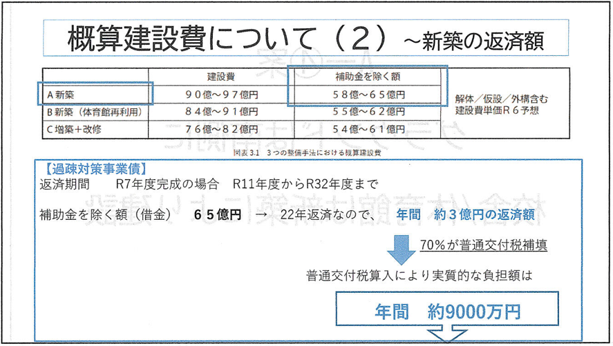 過疎対策事業債を借りるので年間の返済額は約9,000万円。