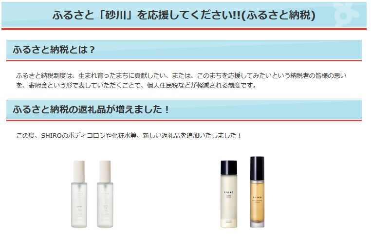 たまに砂川市のHP『ふるさと「砂川」を応援してください!!(ふるさと納税)』にリンクしますのでご覧ください。