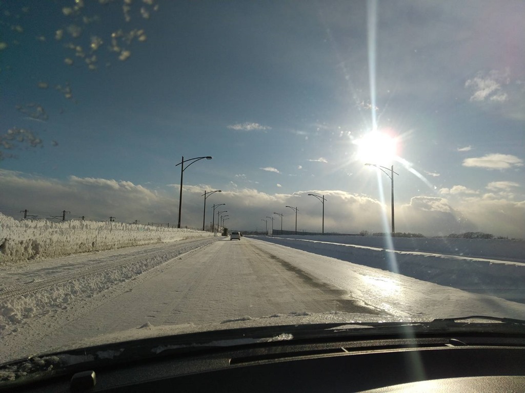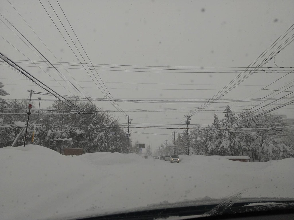 さすがに岩見沢は雪が多く、この日も吹雪いて前方が見えづらくなることがしばしば、しかし、数珠つなぎで走っているので前の車は確認ができる程度で助かりました。