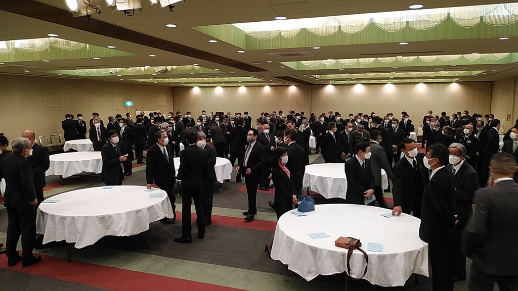 皆さんの挨拶が終わって歓談に入った段階でステージ上から撮りました。会場はこんな感じ。例年より少し少なめな参加者だったでしょうか。