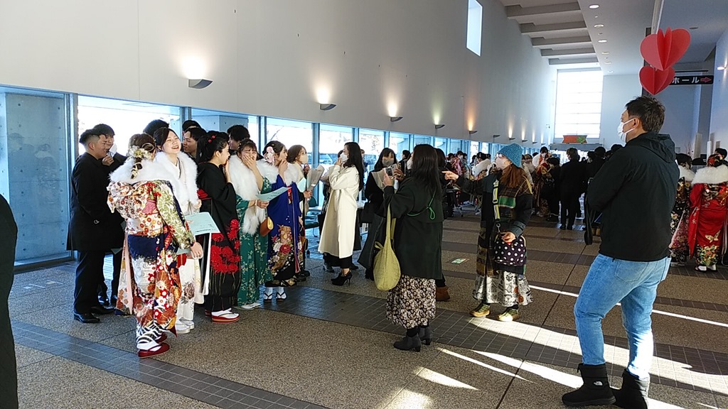 また、式典が終わった後の交流会も以前は交流センターに「すながわスイートロード」のお菓子がたくさん並び、新成人の皆さんが楽し気に談笑する姿が良かったのですが・・・。