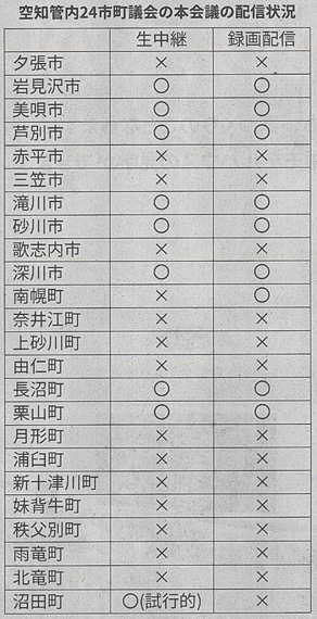 さて、本日の道新朝刊に「空知の議会」が掲載されていました。その中の表です。
