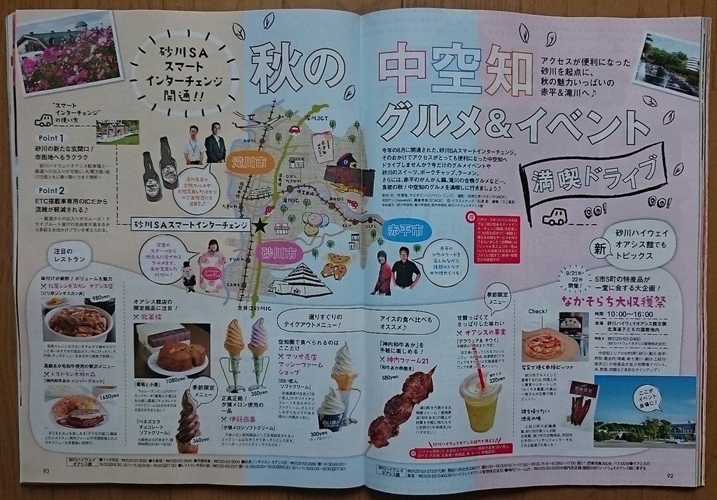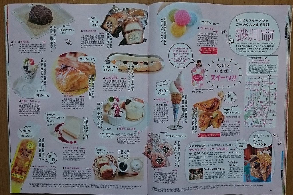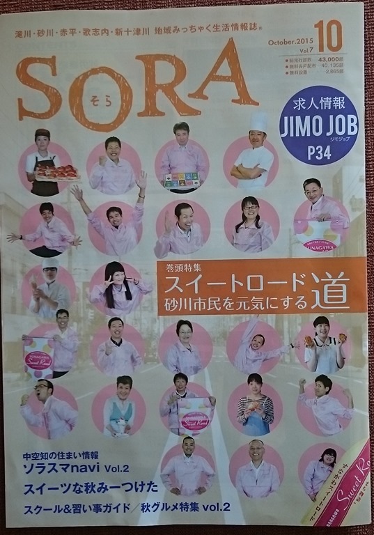 地域みっちゃく生活情報誌「SORA」に巻頭特集で「すながわスイートロード」が掲載されています。スイートロード協議会が主催する「スイートフェスタ」は10月4日(日)、地域交流センターの「ゆう楽市」と同時開催です。