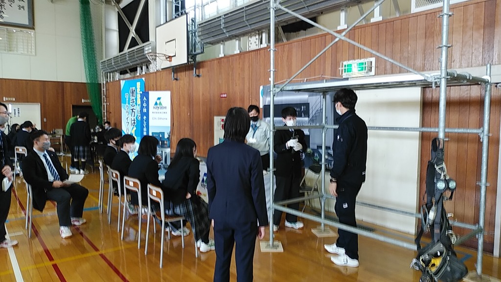 高校1年生たちはグループに分かれて20分×3サイクルで各企業の若い社会人から働く意義などを教えてもらって、職業に関する選択肢や視野が広がったことだと思います。