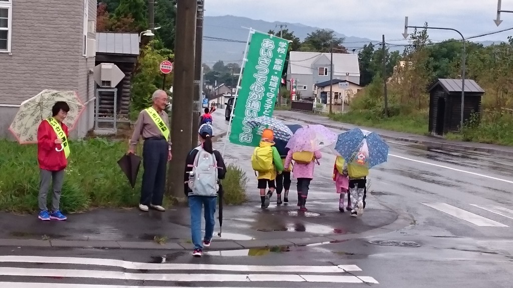 さて、本日から砂川市内では「あいさつ運動」秋の強化週間が始まりました。晴見町内会も参加していますが、子ども達の登校時に雨が降り出しました。