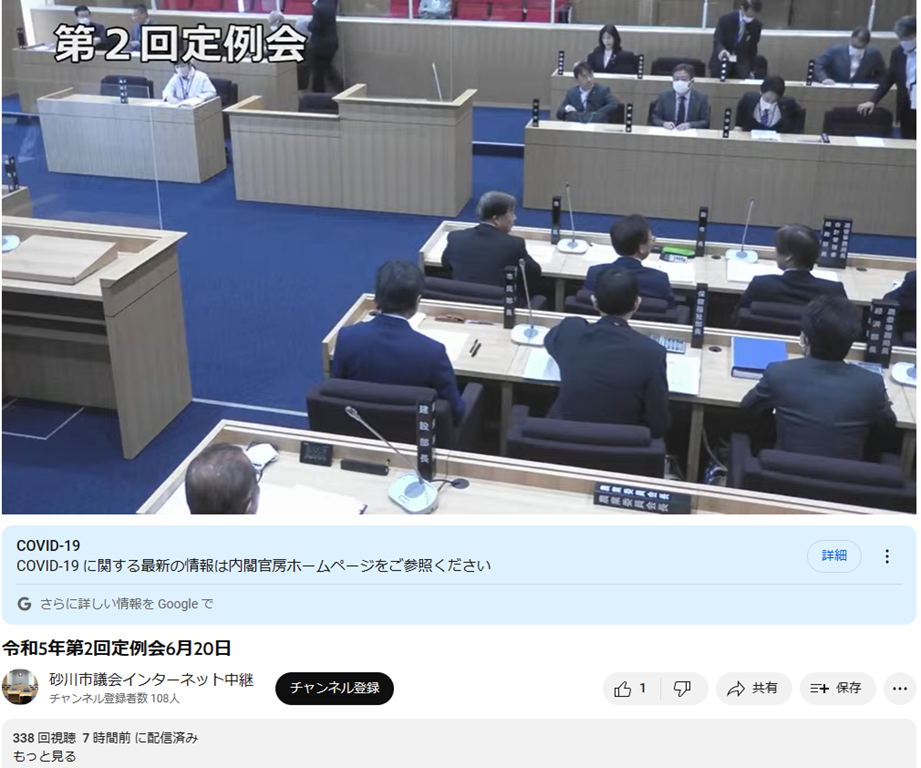今日の一般質問の様子はYouTubeで議会事務局が編集する前の動画「令和5年第2回定例会6月20日」で見ることができますのでリンクします。