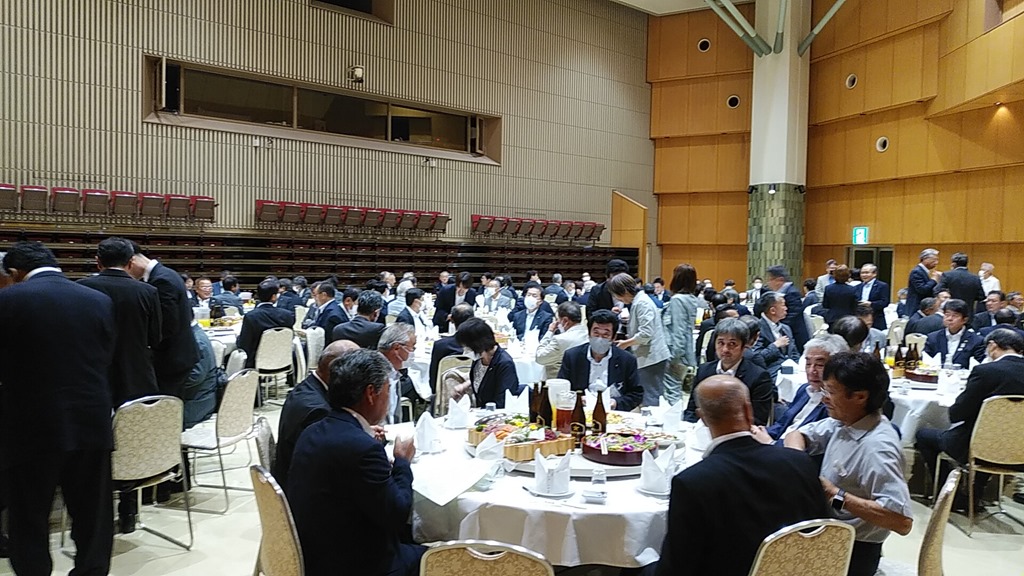上の写真は講演会後に行われた交流会です。参加者は議員96名、特別職29名、議会事務局等24名の合計157名が交流を深めました。