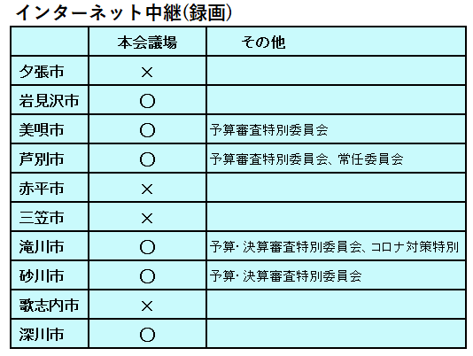砂川市議会は新庁舎が開庁すると同時の令和3年6月議会から始めたのですが、空知地域の自治体の状況を調べてみました。