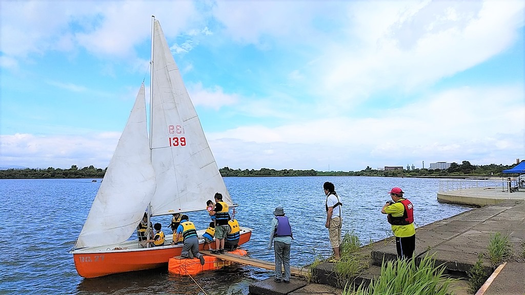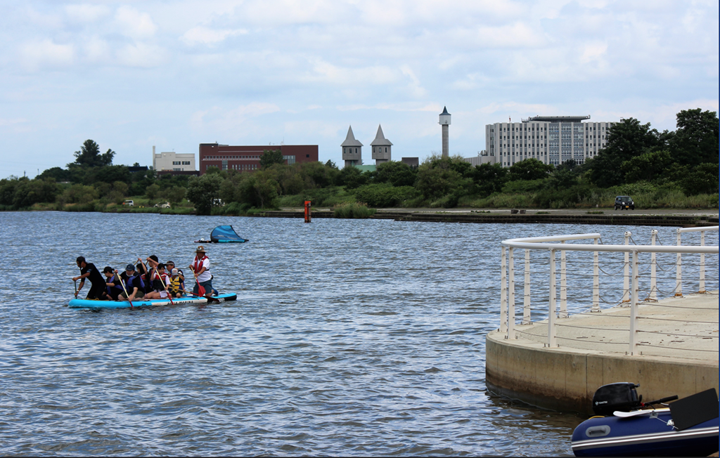 オアシスパークの水面が賑わっていました。石狩川下覧櫂の主催で「水上体験学習」が行われていました。