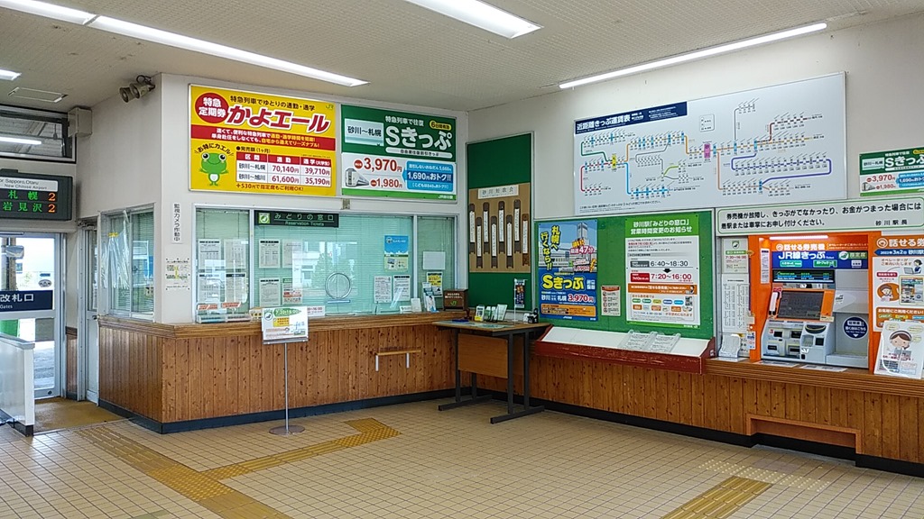 砂川駅の窓口は7月10日から営業時間が変わったようです。これまで午前6時40分~午後6時30分まで開いていたのが、午前7時20分~午後4時までに。