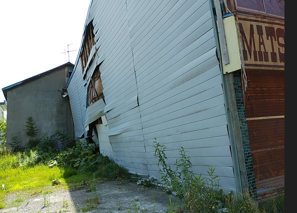 上の写真は以前から多くの指摘があった国道12号線沿いの空き家です。倒壊のあそれがあるため国道を管理する開発局は歩道を通行止めにしています。