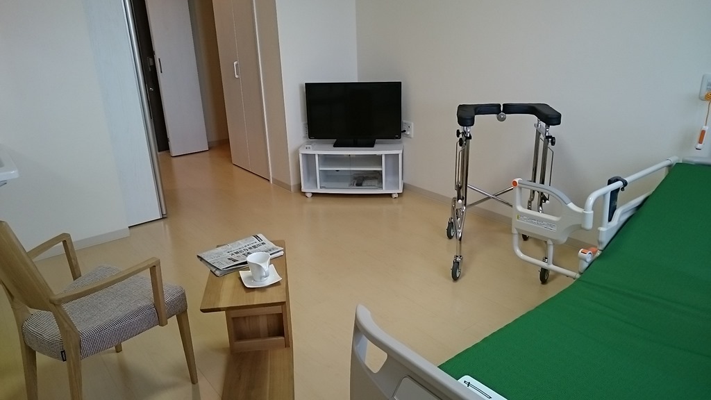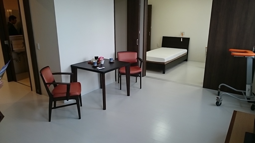 これまで、いろいろなサ高住を見て来ましたが、居室スペースは広いです。共同スペースとしては食堂、機能訓練室、多目的室、医務室などがあり、さすが、慈恵会病院系列の事業主で軽い病気の時はお医者さんが往診に来られるとのこと。