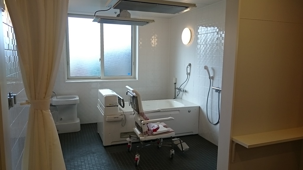 上の写真は左が洗濯室、右は車椅子でも入れる機械浴室とかなり設備も充実していました。もうすでに、15件ほどの申込みがあるとのお話ですが、なかなか、私のHPで上手く表現できません。