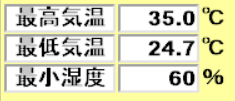 左は砂川市の気象観測データの最高気温。右は地域交流センター「ゆう」に設置してある直射日光が当たる温度計。野外では半袖の肌が焼けるような感覚でした。