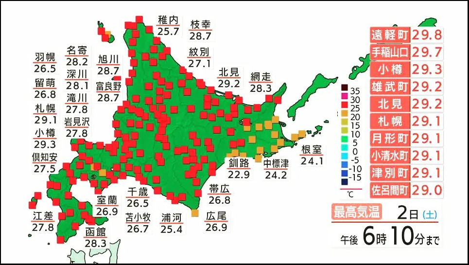 9月2日は北海道内で30℃を超える真夏日の所がなかったそうです。