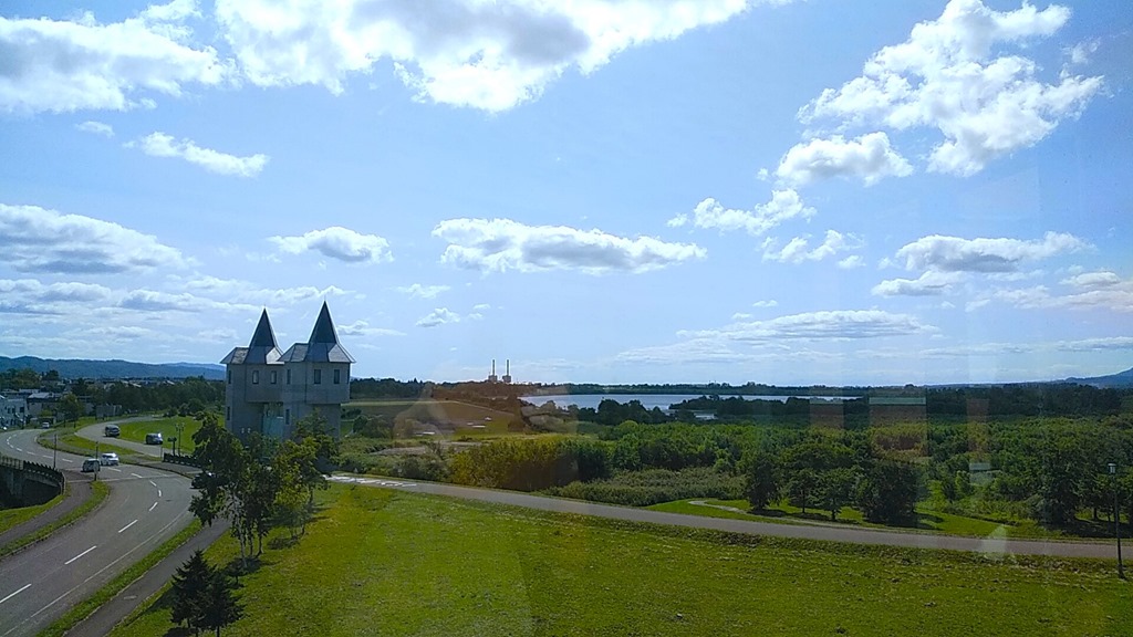 本日の最高気温は23.9℃で、秋って感じです。下の写真は市役所4階展望室から見たオアシスパーク。空が高く、気持ちの良い青空が広がっていました。