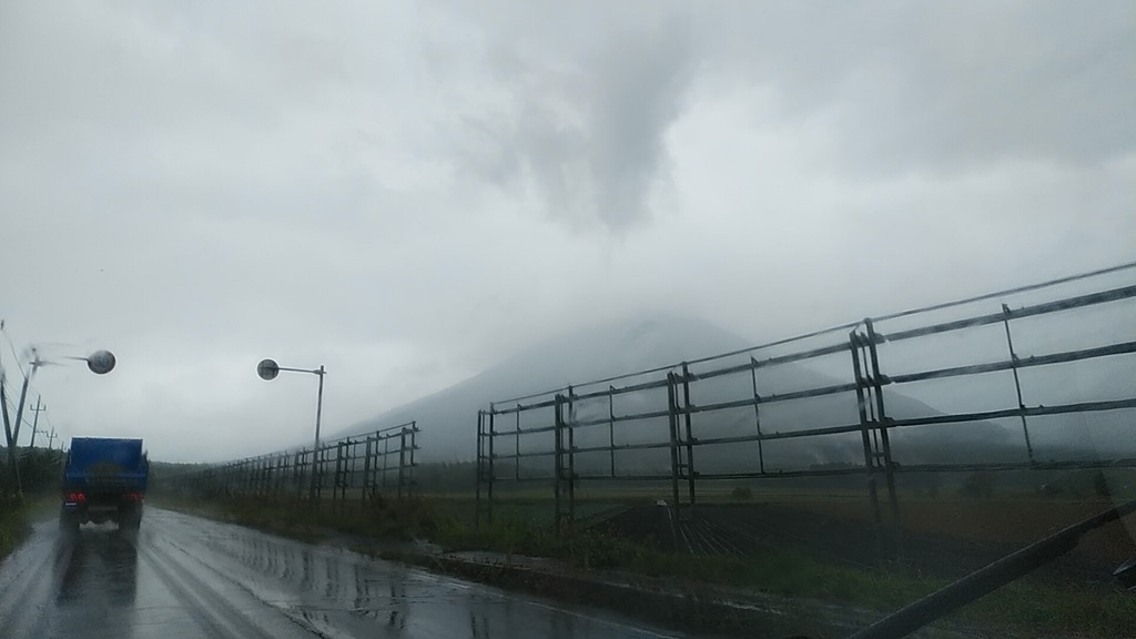 もし天気が良ければ車中の眺めも最高だったのではないかと思われるコースでしたが、上の写真のように厚い雲に覆われて羊蹄山もご覧のように薄っすらと輪郭が見えただけ。