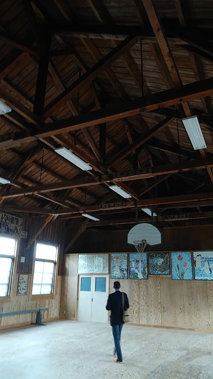 見るからに小学校って感じですが、屋根も外壁も新しかったです。手前は校庭だったところで、中心にあるヤグラは盆踊りで今も使っているそうです。下のイラストは説明をしていただく中での整備計画より。